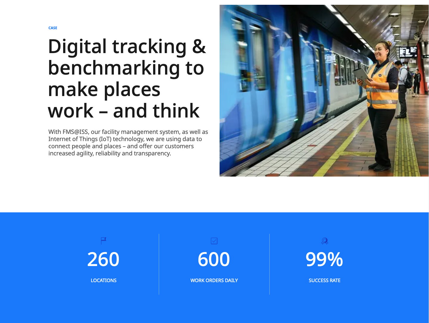 I’ve crafted stories and messaging to promote products and services for small business websites as well as large-cap companies’ internal or external rollouts. The example here showcases ISS Group’s digital facility management system.
